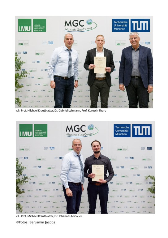 Im Rahmen der Absolventenfeier am 24.01.2025 würdigte das Münchner GeoZentrum zwei herausragende Dissertationen: